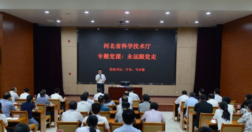 为深入学习贯彻习近平总书记系列重要讲话精神,积极推动“两学一做”学习教育制度化常态化,严格落实省委组织部有关要求,省科技厅在科技大厦开展党组书记讲党课活动,厅党组书记、厅长马宇骏以《永远跟党走》为题进行了专题授课。厅机关和厅属单位班子成员100余人参加了本次活动。