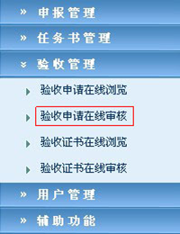 3、归口管理部门用户审核。归口用户登录“河北省科技计划项目管理平台”——“验收管理”——“验收申请在线审核”,在线审核验收申请,审核通过后验收申请才能提交到省科技厅。